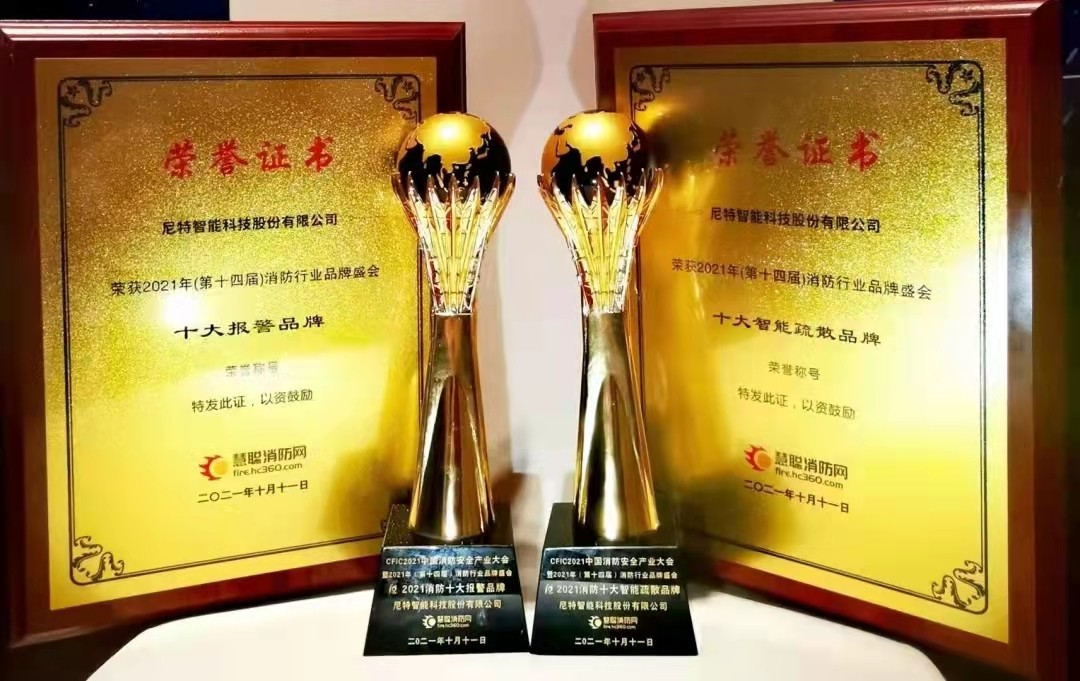 在本次品牌盛會頒獎盛典上,尼特憑借其專業的研發能力、可靠的產品質量、規范的服務體系以及優秀的應用案例,再次攬獲“十大報警品牌”“十大智能疏散品牌”“智慧消防領軍品牌”三大獎項。至此,尼特連續八年被評為“+大報警品牌榮譽稱號。